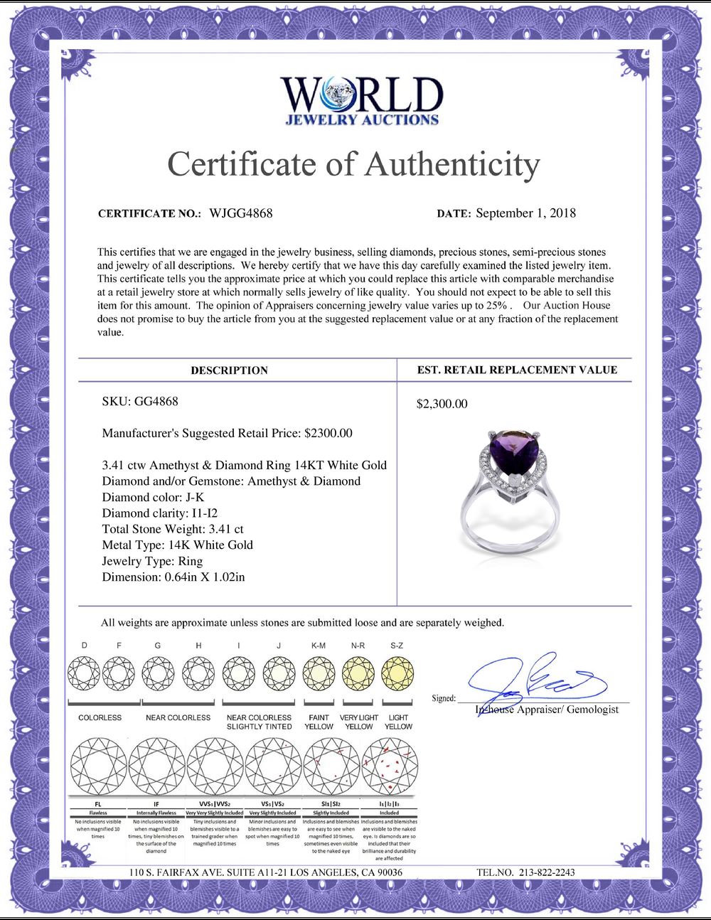 REF-75Z4N - SKU: GG4868 ---- Genuine 3.41 ctw Amethyst & Diamond Ring 14KT White Gold