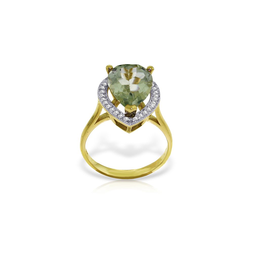 Genuine 14K Yellow Gold 3.41 ctw Green Amethyst & Diamond Ring