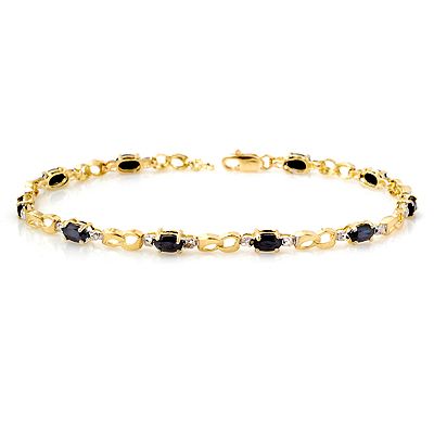 Genuine 3.42 ctw Sapphire & Diamond Bracelet 10K Gold * MSRP $920 ---- Diamond: 1 Round cut @ 0.01 ctw---- Clarity: SI-I---- Color: H-K----Gemstone: Natural Sapphire----Gemstone color: Blue----Gemstone quality: Good-to-Very Good----Gemstone Cut & Weight: 10 Oval cut @ 3.41 ctw----Metal Purity & Color : 10K Gold-Yellow----Gold weight: 3.70 grams----Dimension: Approx. 7 x 1/8----Shipping: Within 15 business days