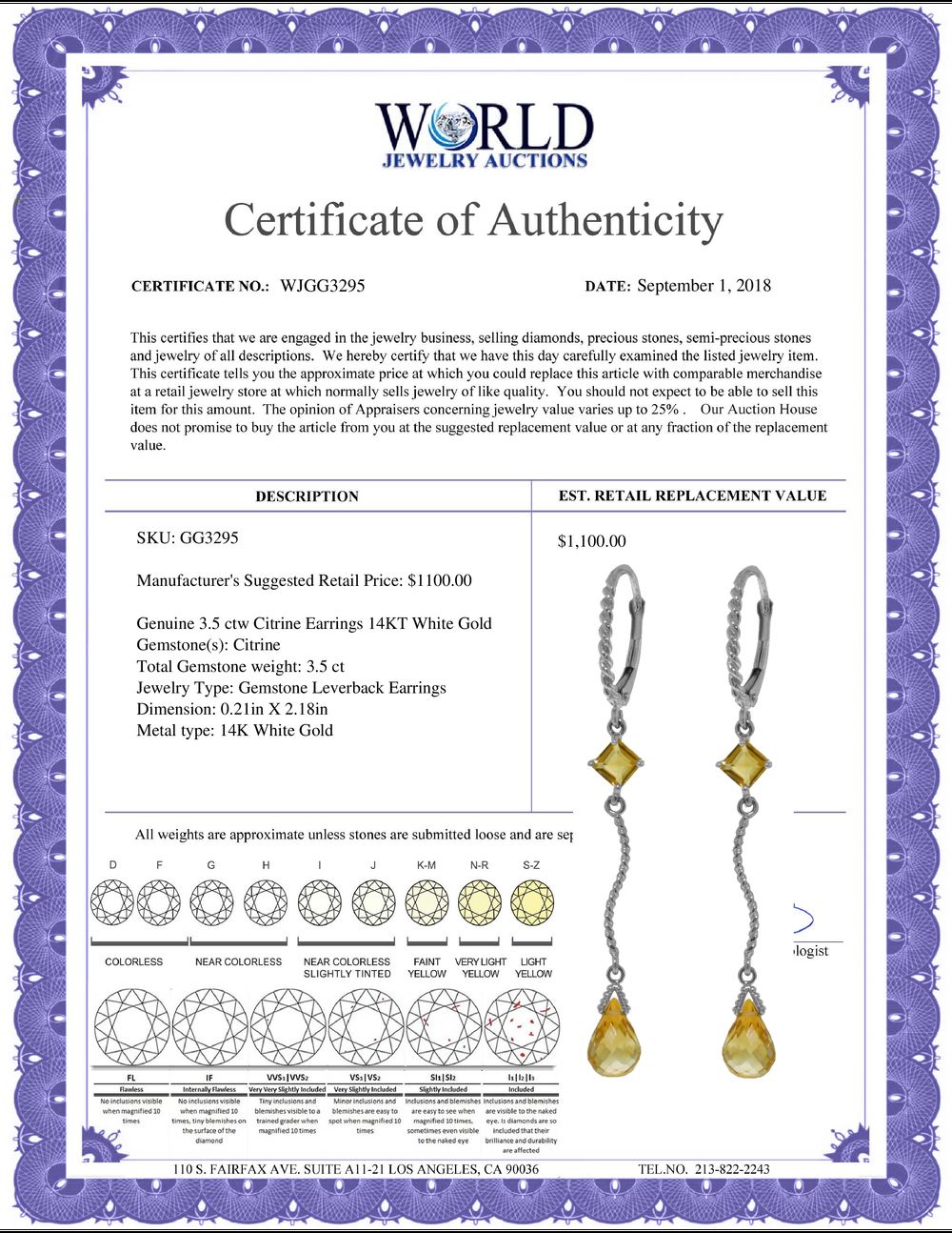 REF-33T8A - SKU: GG3295 ---- Genuine 3.5 ctw Citrine Earrings 14KT White Gold