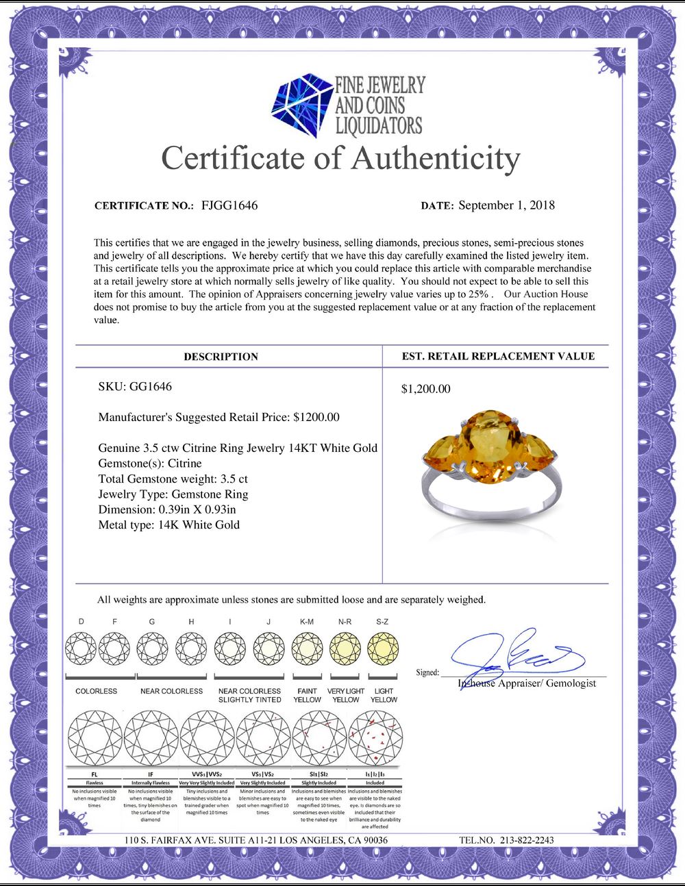 REF-37R7P - SKU: GG1646 ---- Genuine 3.5 ctw Citrine Ring 14KT White Gold