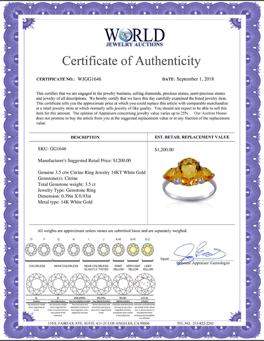REF-37R7P - SKU: GG1646 ---- Genuine 3.5 ctw Citrine Ring 14KT White Gold