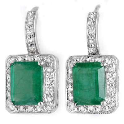 Genuine 3.5 ctw Emerald & Diamond Earrings White Gold - Retails for $2410 ---- Diamond: 46 Round cut @ 0.50 ctw---- Clarity: SI-I---- Color: H-K----Gemstone: Natural Emerald----Gemstone color: Green----Gemstone quality: Good-to-Very Good----Gemstone Cut & Weight: 2 Emerald cut @ 3.0 ctw----Metal Purity & Color : 14K Gold-White----Gold weight: 4.40 grams----Dimension: Approx. 3/8 x 3/4----Shipping: Within 15 business days
