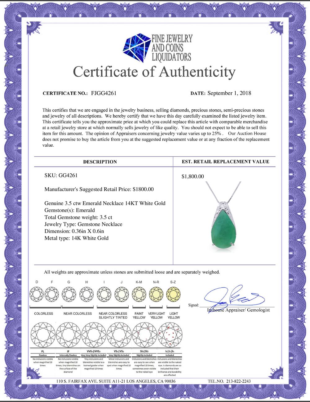 REF-59W8Y - SKU: GG4261 ---- Genuine 3.5 ctw Emerald Necklace 14KT White Gold