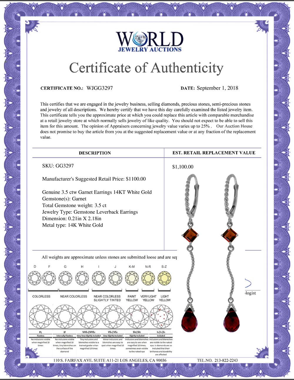 REF-33Y8F - SKU: GG3297 ---- Genuine 3.5 ctw Garnet Earrings 14KT White Gold