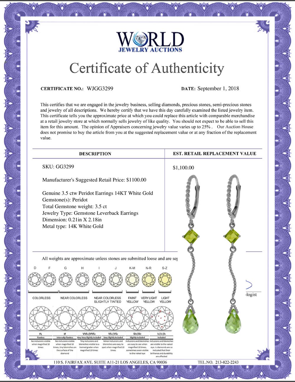 REF-33W8Y - SKU: GG3299 ---- Genuine 3.5 ctw Peridot Earrings 14KT White Gold