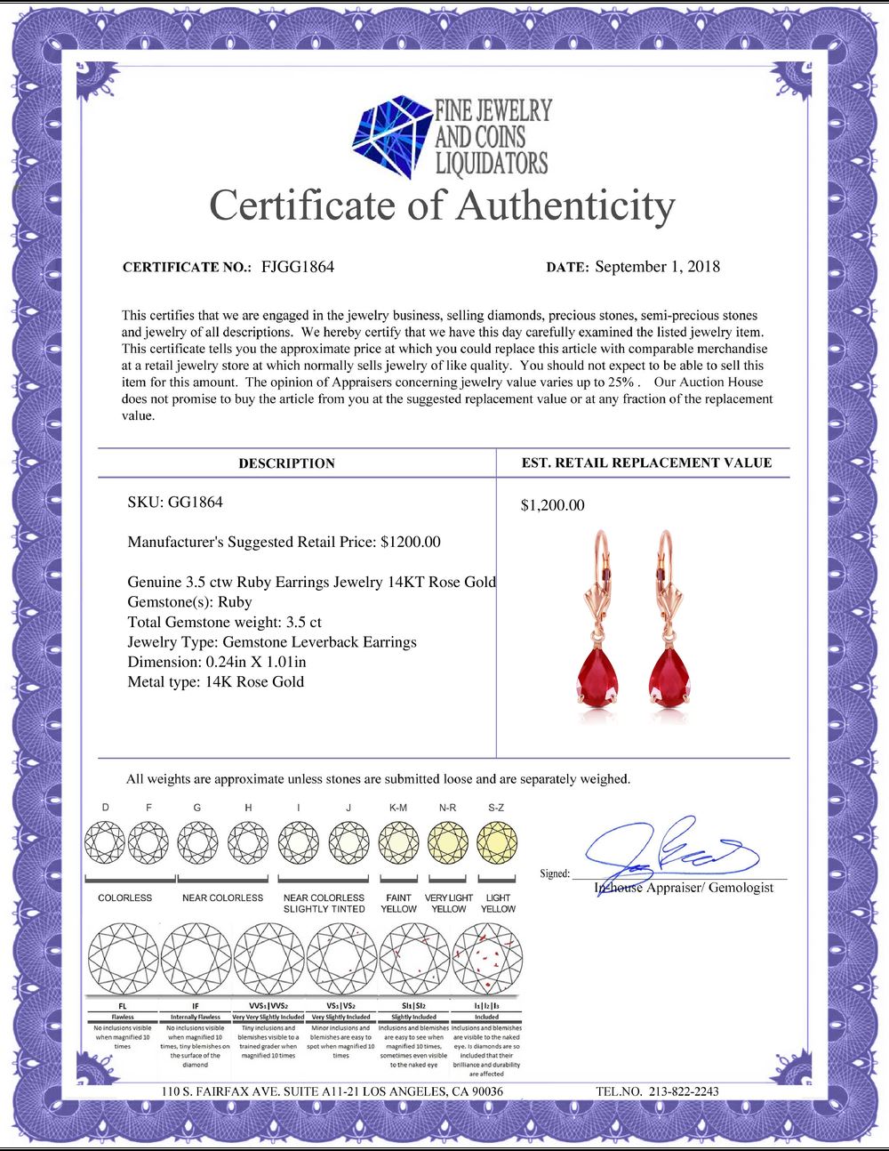 REF-38Z6N - SKU: GG1864 ---- Genuine 3.5 ctw Ruby Earrings 14KT Rose Gold