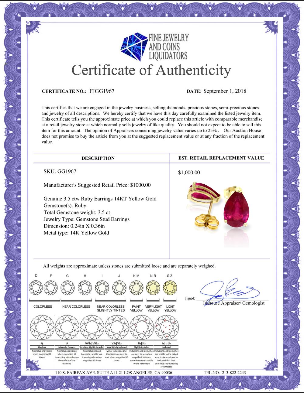 REF-31M2T - SKU: GG1967 ---- Genuine 3.5 ctw Ruby Earrings 14KT Yellow Gold