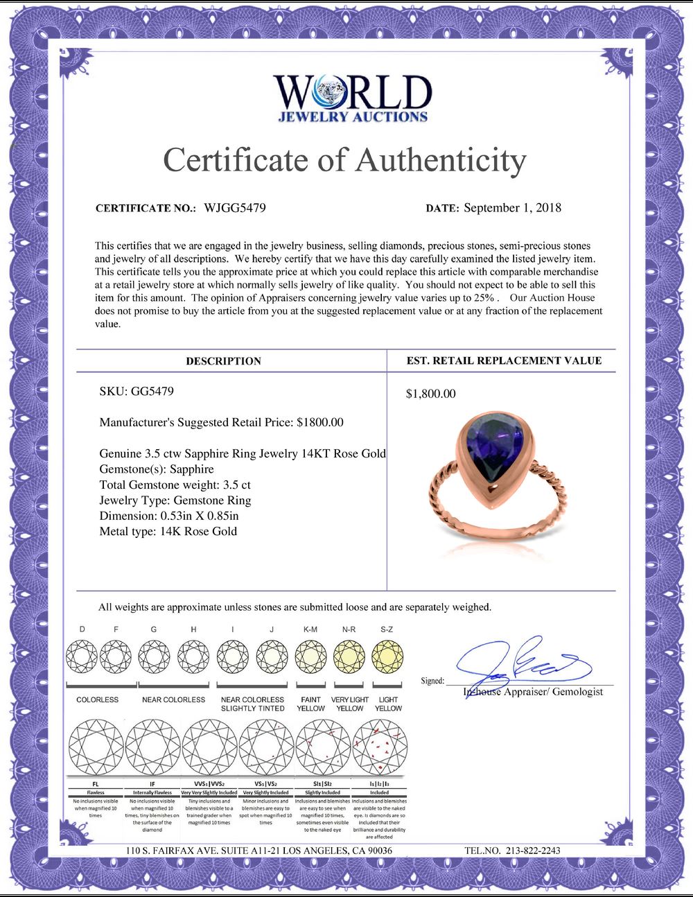 REF-59P2H - SKU: GG5479 ---- Genuine 3.5 ctw Sapphire Ring 14KT Rose Gold