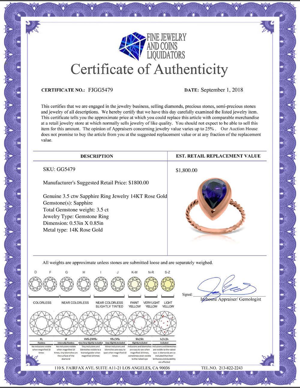 All Gia and EGL Diamonds are subject to availability due to consignors’ terms with us.