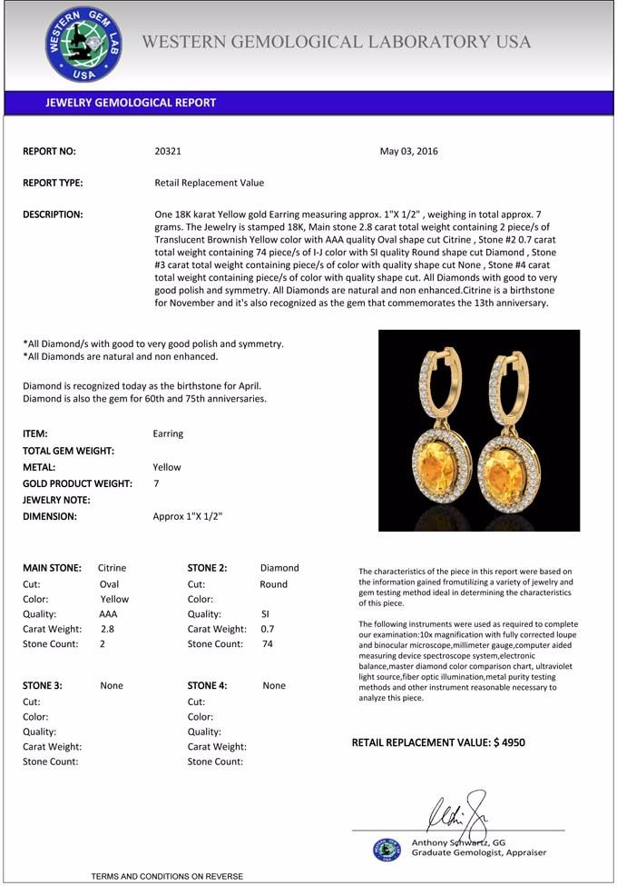 total approx. 7 grams. The Jewelry is stamped 18K, Main stone 2.8 carat total weight containing 2 piece/s of Translucent Brownish Yellow color with