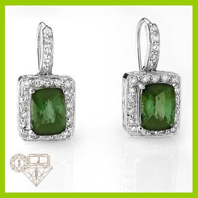 Gemstone: Green Tourmaline ; Diamond Count: 46 RD ; Diamond Weight: 0.52; Clarity: SI1-SI2 H-J; Gemstone Clarity: AA - AAA : Color: Green; Gemstone Count & Color: 2 Cushion Cut ; Gemstone Weight: 3.02; Metal Purity: 14KT; Metal: White-Gold ; Gold Weight (g) approx: 4.42; Dimension: Approx. 3/8" x 3/4"