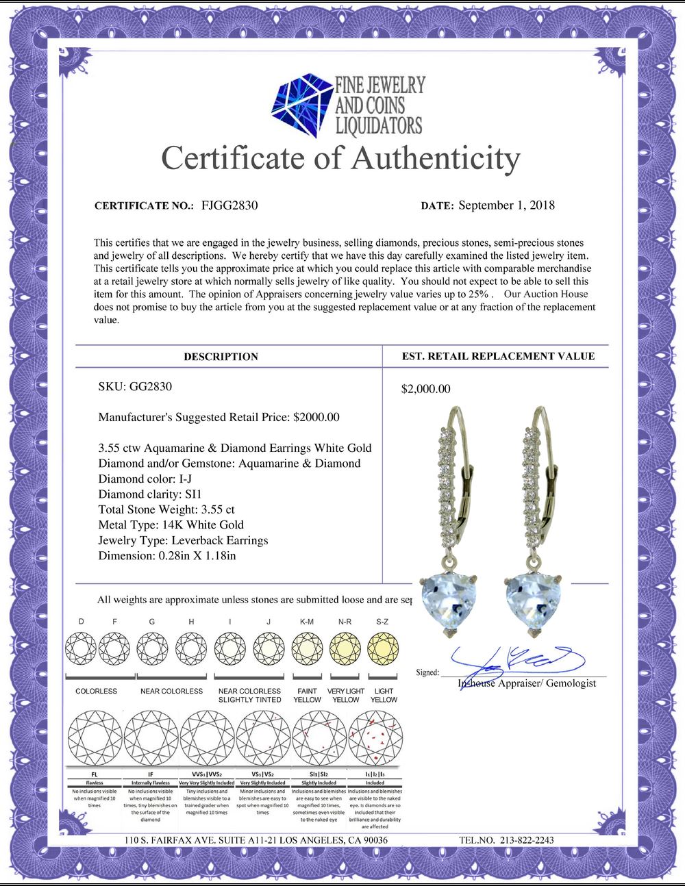 REF-66Y2F - SKU: GG2830 ---- Genuine 3.55 ctw Aquamarine & Diamond Earrings 14KT Rose Gold