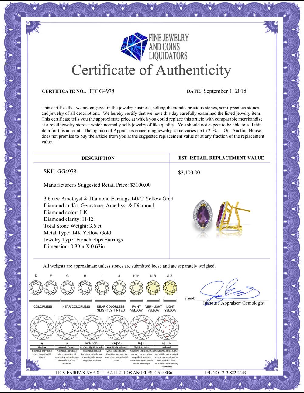 REF-102X2M - SKU: GG4978 ---- Genuine 3.6 ctw Amethyst & Diamond Earrings 14KT Yellow Gold