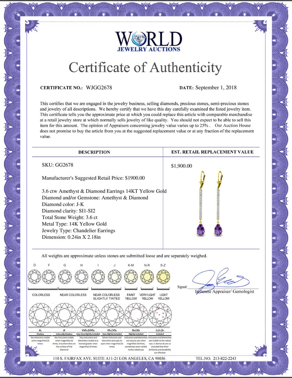 REF-60H4X - SKU: GG2678 ---- Genuine 3.6 ctw Amethyst & Diamond Earrings 14KT Yellow Gold