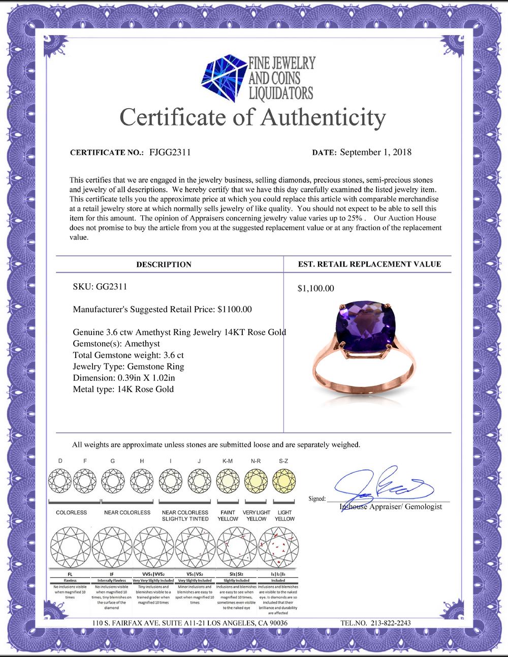 REF-34V7W - SKU: GG2311 ---- Genuine 3.6 ctw Amethyst Ring 14KT White Gold
