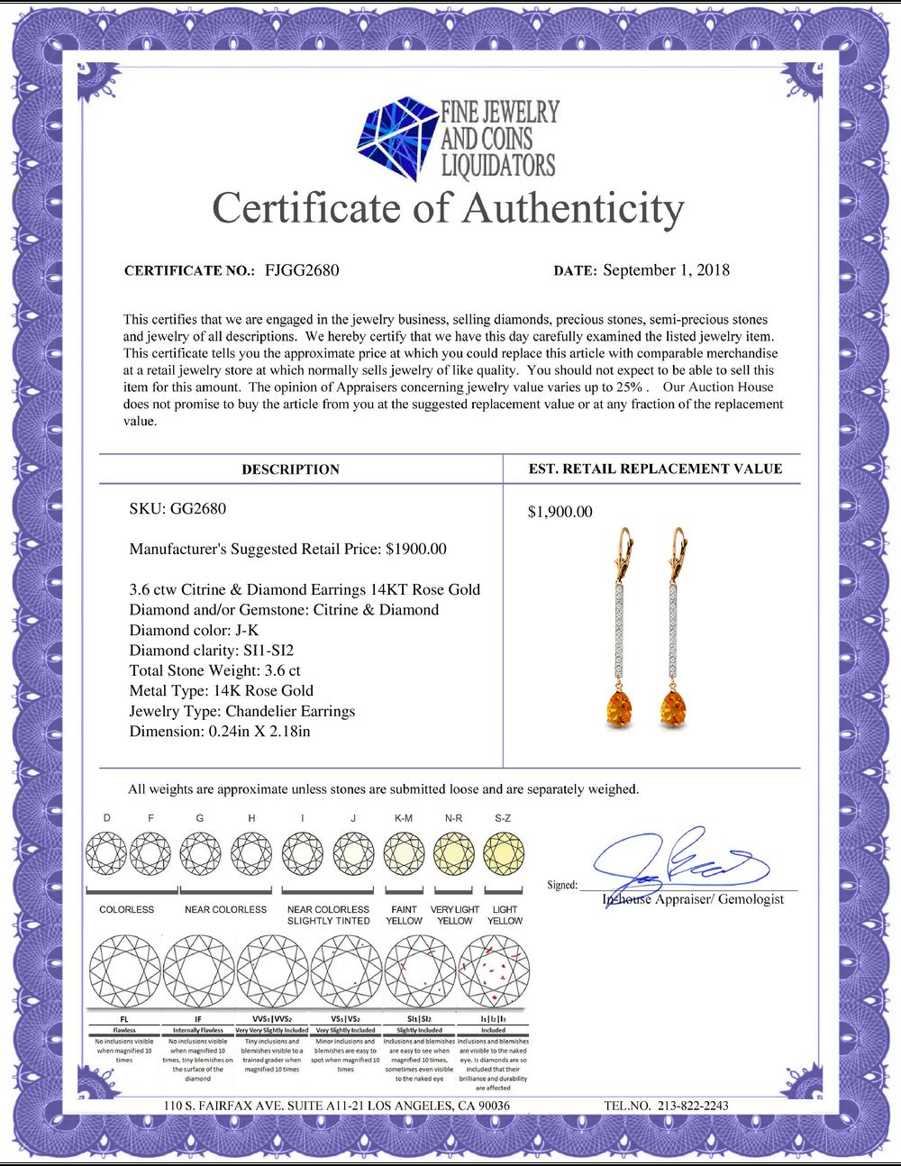 REF-60Z4N - SKU: GG2680 ---- Genuine 3.6 ctw Citrine & Diamond Earrings 14KT Rose Gold