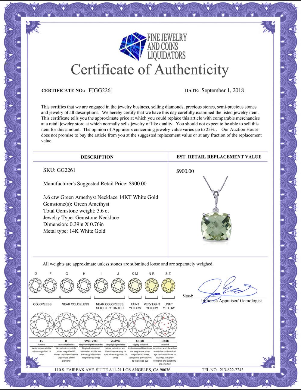 REF-28H9X - SKU: GG2261 ---- Genuine 3.6 ctw Green Amethyst Necklace 14KT Rose Gold