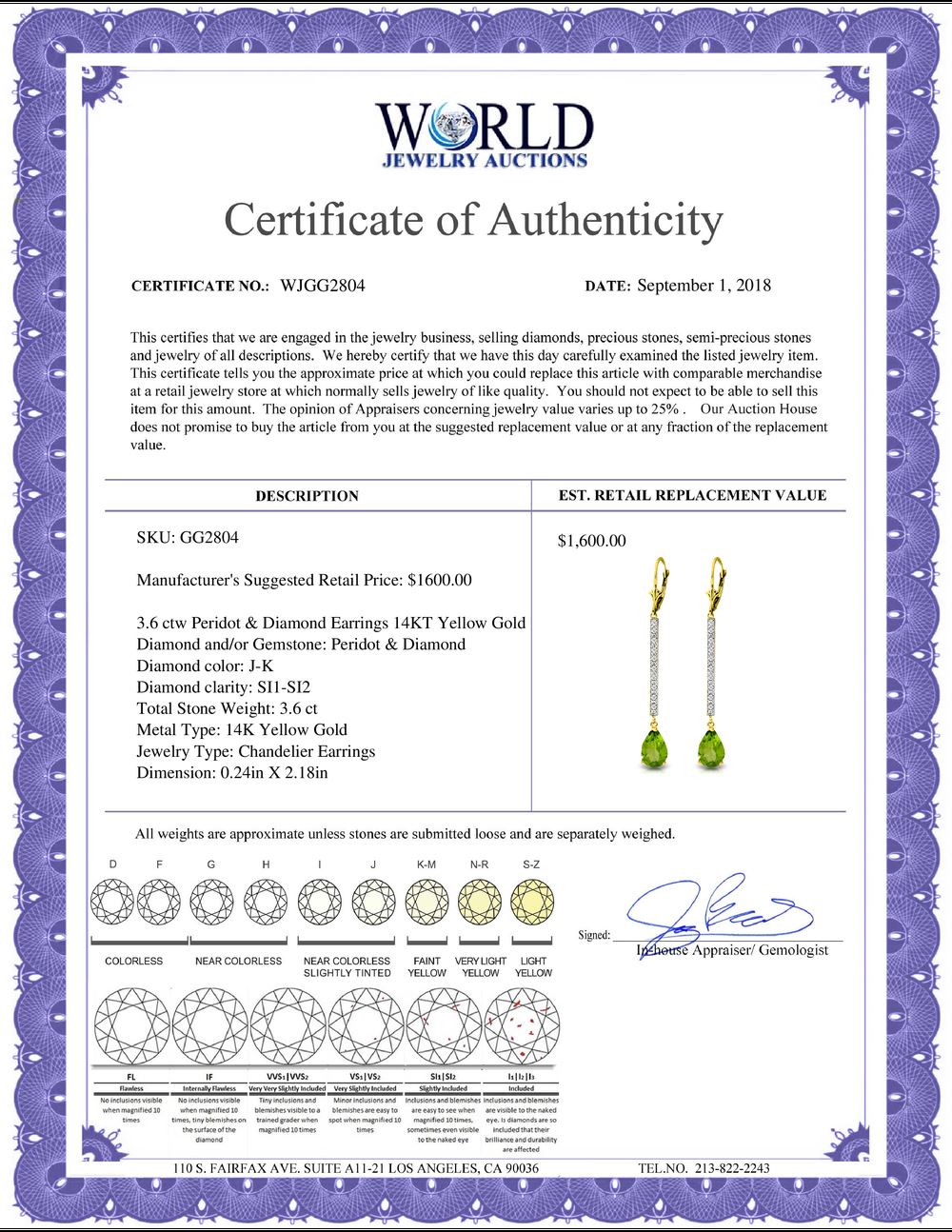 Genuine 14K Yellow Gold 3.6 ctw Peridot & Diamond Earrings