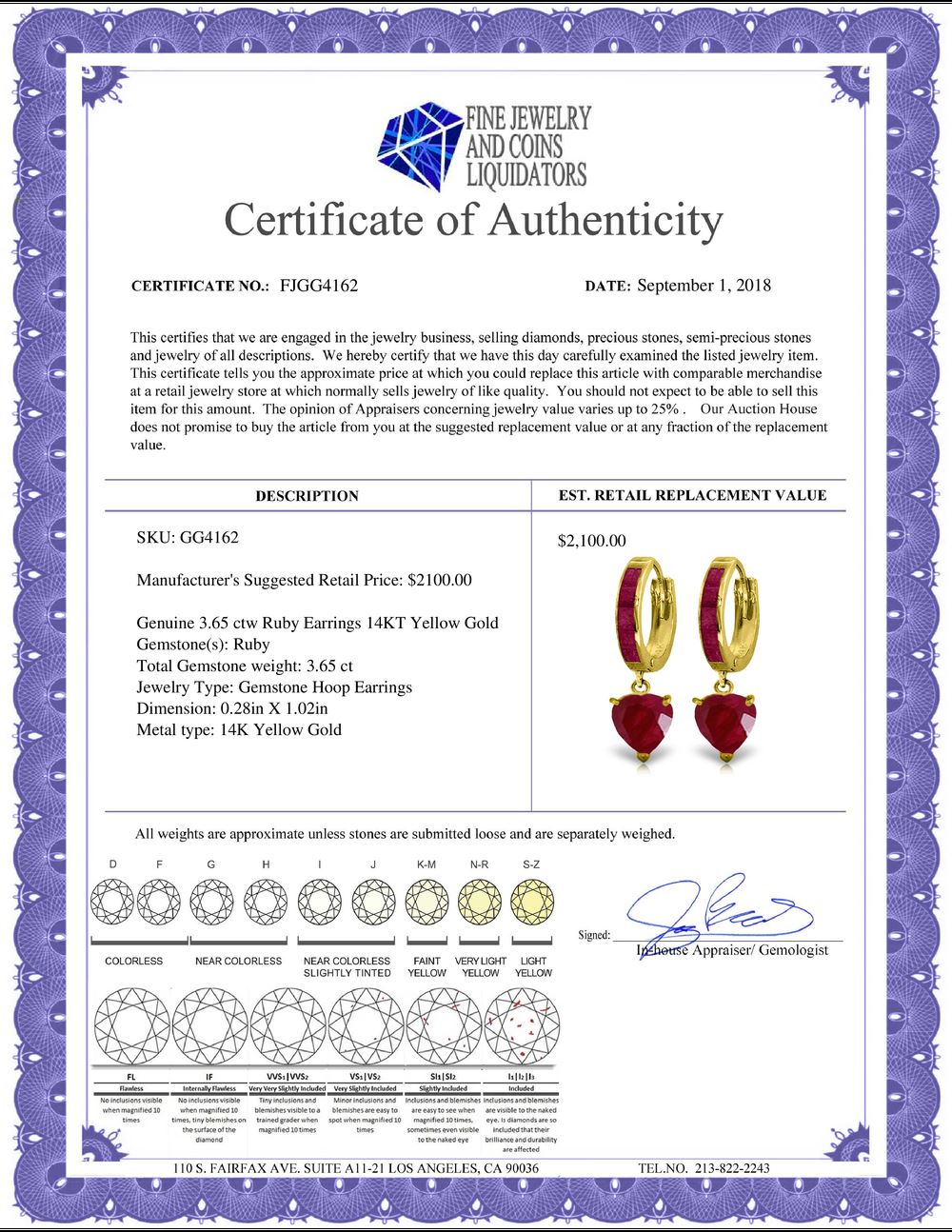 All Gia and EGL Diamonds are subject to availability due to consignors’ terms with us.