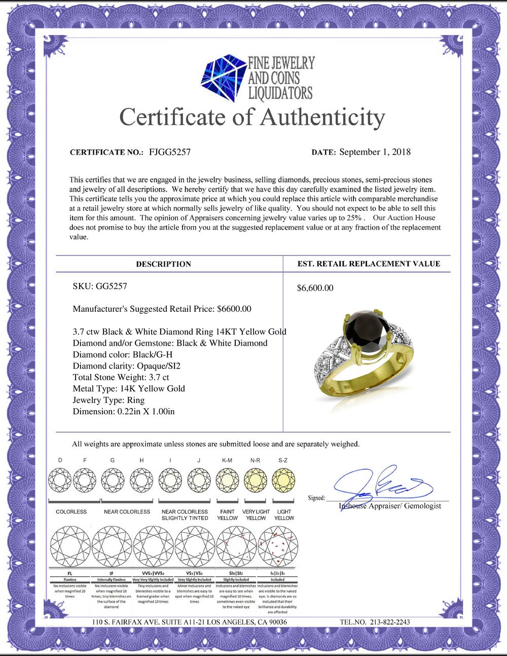 Genuine 14K Yellow Gold 3.7 ctw Black & White Diamond Ring