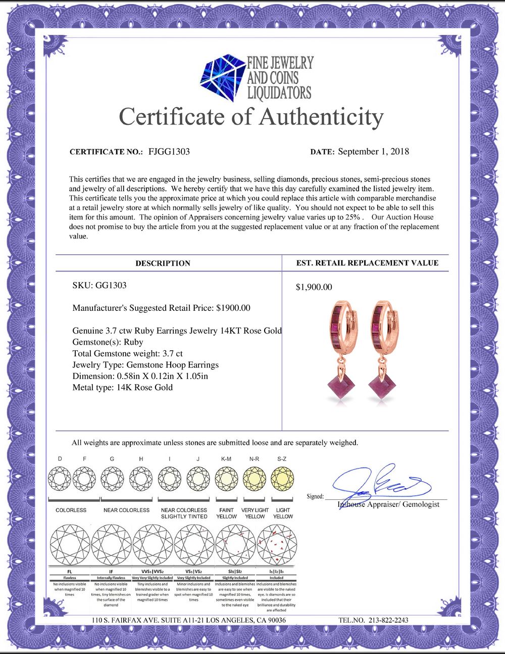 REF-60M3T - SKU: GG1303 ---- Genuine 3.7 ctw Ruby Earrings 14KT White Gold