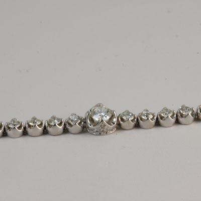 Main Stone: Diamond ; Type: Bracelet ; Diamond Count 1: 1RD ; Diamond Weight 1: 0.79 ; Diamond Count 2: 28RD ; Diamond Weight 2: 2.91 ; Metal Purity: 14KT ; Metal: White Gold ; Diamond Clarity: SI ; Diamond Color: OffWhite ; Weight(g): 14.619
