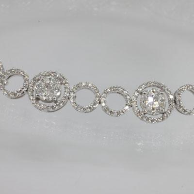 Main Stone: Diamond ; Type: Bracelet ; Diamond Count 1: 196TP ; Diamond Weight 1: 1.06 ; Diamond Count 2: 40RD ; Diamond Weight 2: 2.67 ; Metal Purity: 18KT ; Metal: White Gold ; Diamond Clarity: SI1-SI2 ; Diamond Color: G-H ; Weight(g): 13.84g; Length: