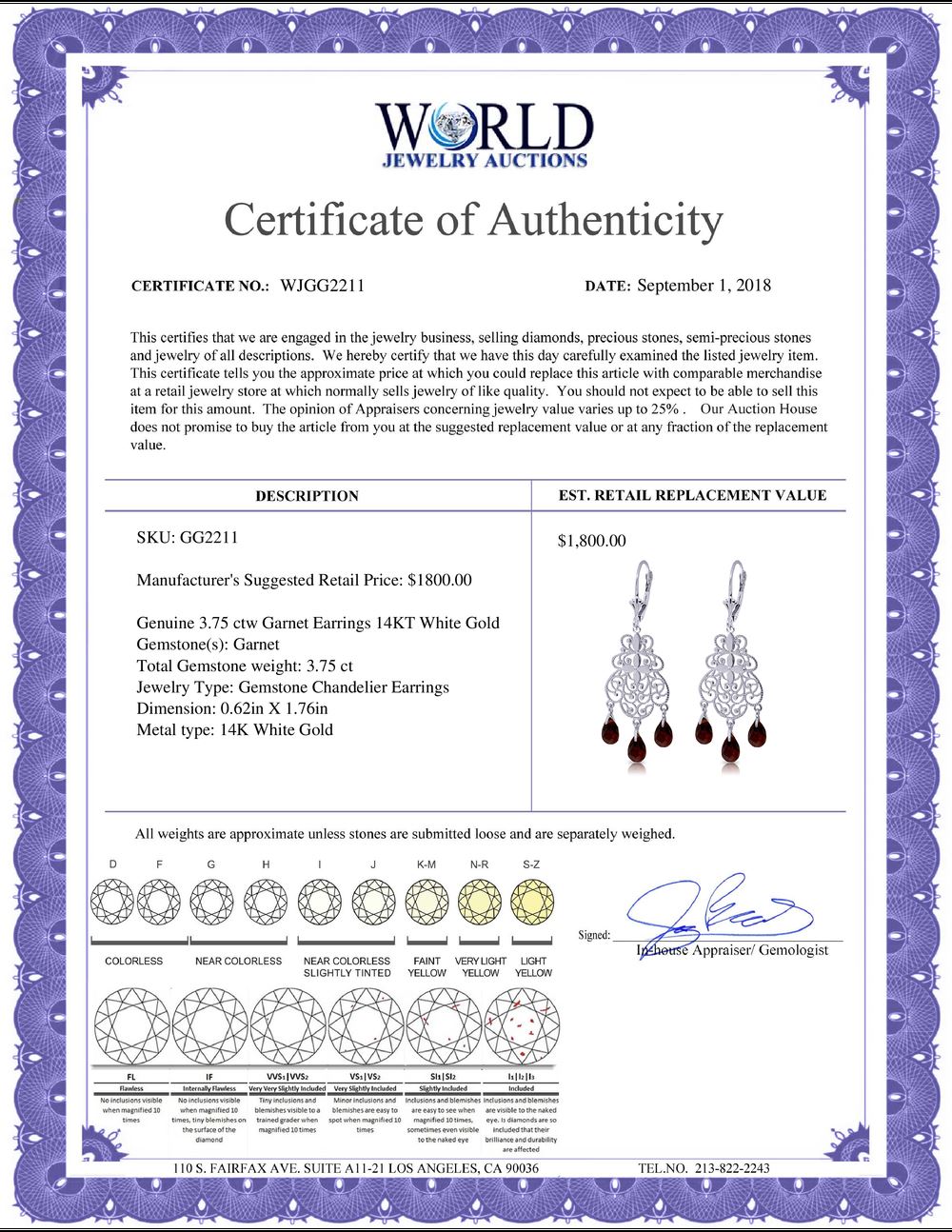 REF-58K3V - SKU: GG2211 ---- Genuine 3.75 ctw Garnet Earrings 14KT White Gold