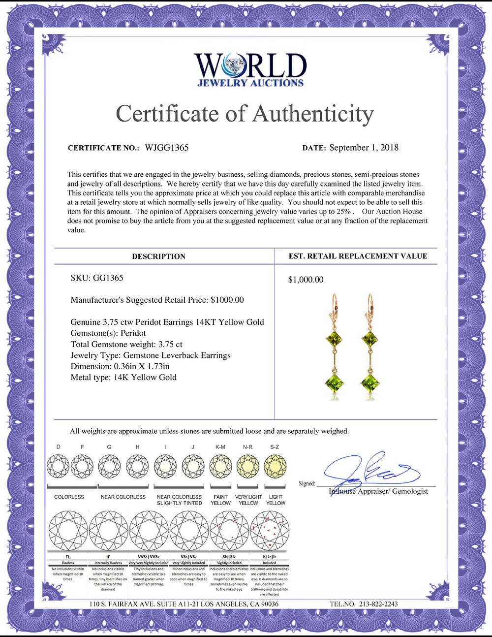 Genuine 14K Yellow Gold 3.75 ctw Peridot Earrings