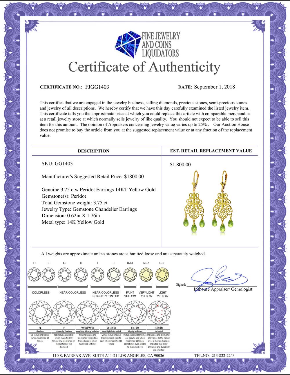 Genuine 14K Yellow Gold 3.75 ctw Peridot Earrings