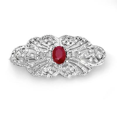 Genuine 3.75 ctw Ruby & Diamond Brooch 14K White Gold-2731A4RUB-W