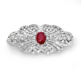 Genuine 3.75 ctw Ruby & Diamond Brooch 14K White Gold -2731A4RUB-W