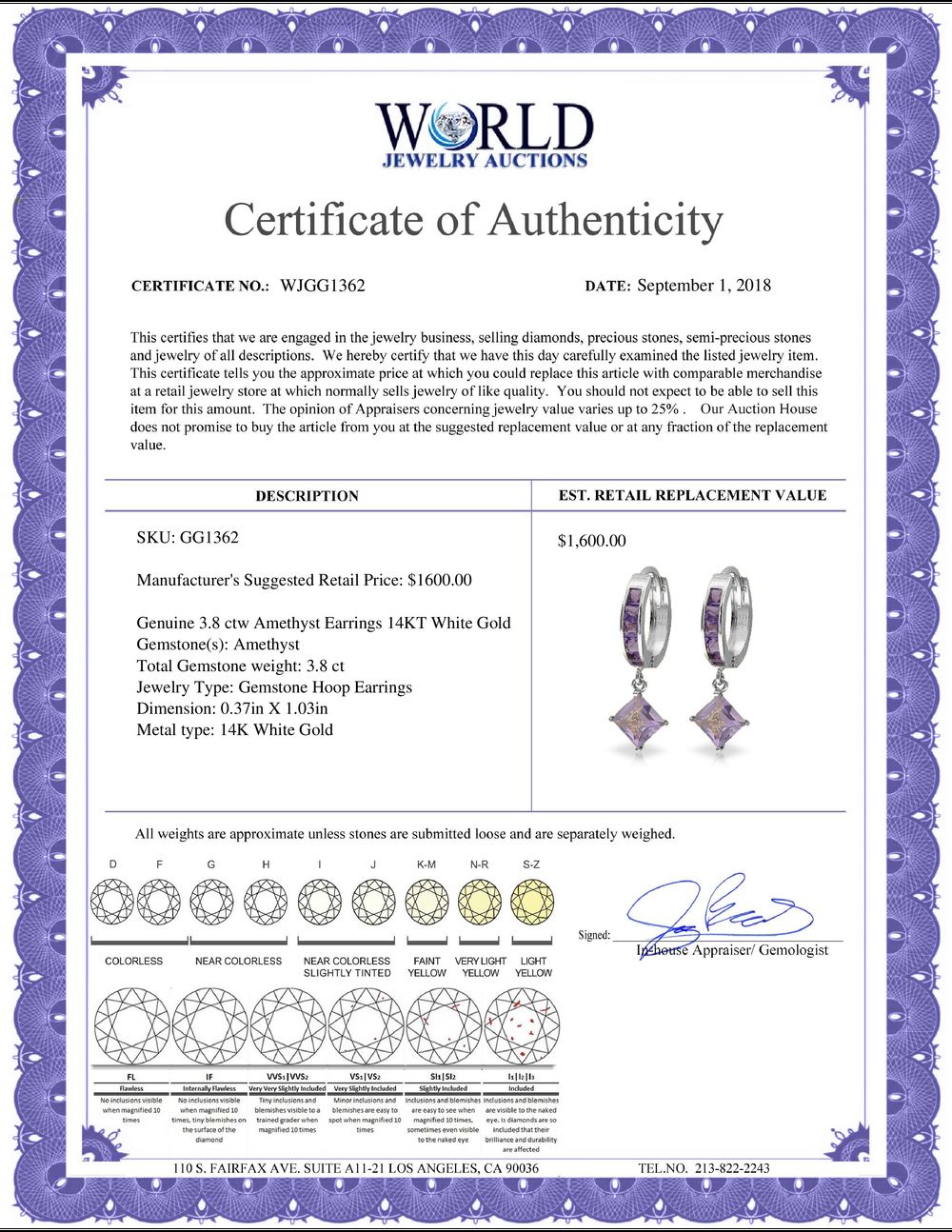REF-52P9H - SKU: GG1362 ---- Genuine 3.8 ctw Amethyst Earrings 14KT White Gold