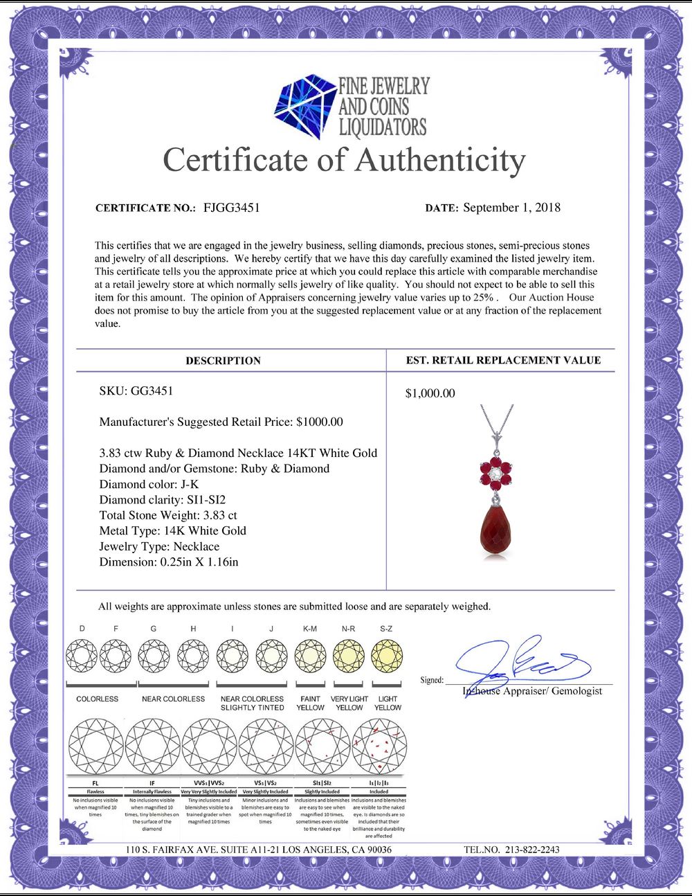 All Gia and EGL Diamonds are subject to availability due to consignors’ terms with us.