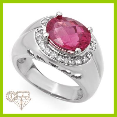 Gemstone: Pink Tourmaline; Diamond Count: 20 RD ; Diamond Weight: 0.34; Clarity: SI1-SI2 H-J; Gemstone Clarity: AA - AAA : Color: Pink; Gemstone Count & Color: 1 Oval Cut; Gemstone Weight: 3.52; Metal Purity: 10KT; Metal: White-Gold ; Gold Weight (g) approx: 7.52; Ring Size 6.5; Dimension: Approx. 1/2" x 5/8"