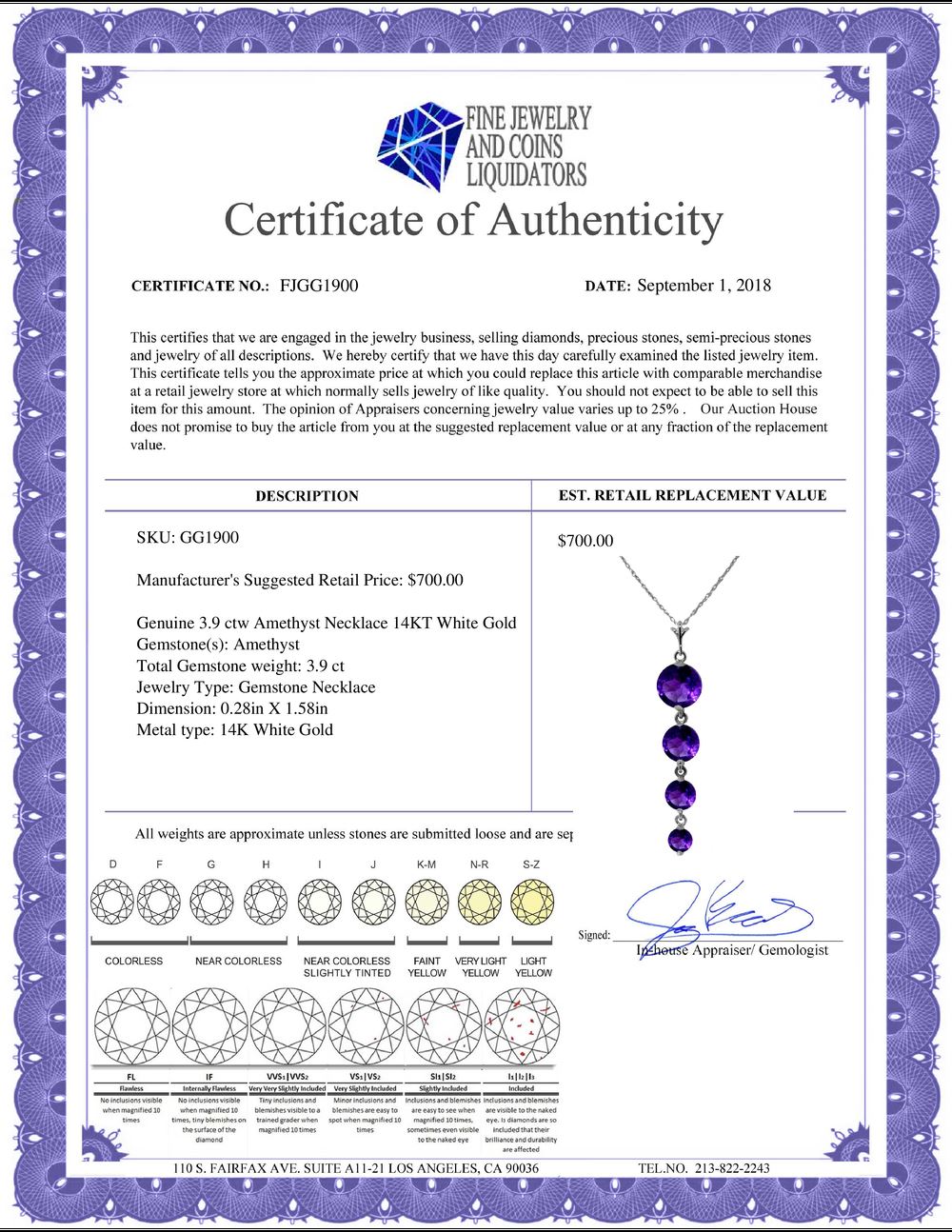 REF-23M2T - SKU: GG1900 ---- Genuine 3.9 ctw Amethyst Necklace 14KT Rose Gold