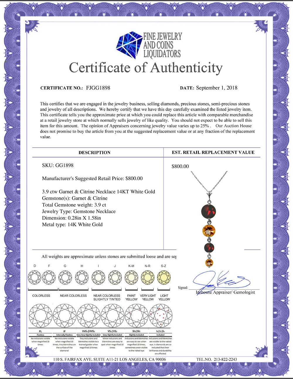 REF-23N5R - SKU: GG1898 ---- Genuine 3.9 ctw Garnet & Citrine Necklace 14KT White Gold