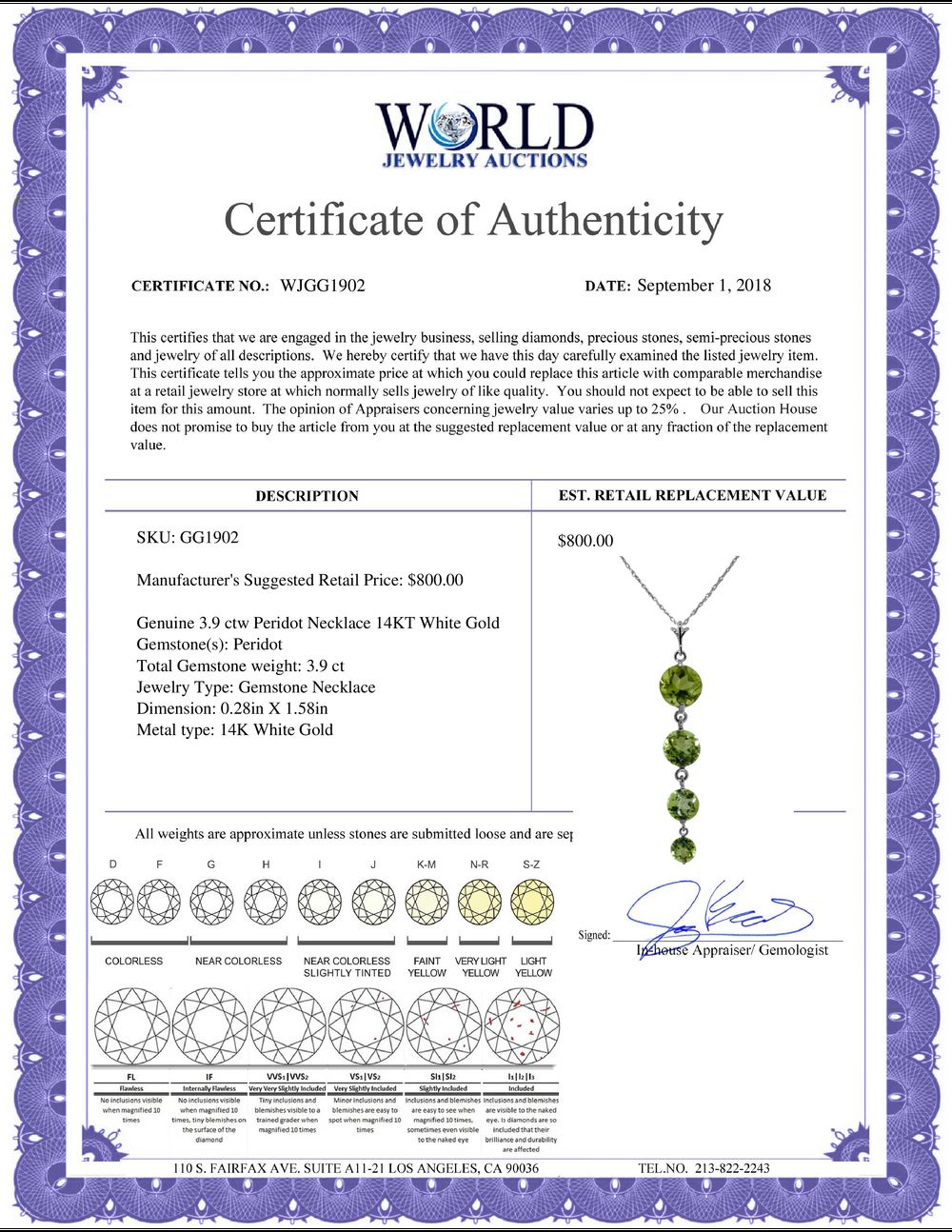 REF-23W5Y - SKU: GG1902 ---- Genuine 3.9 ctw Peridot Necklace 14KT White Gold