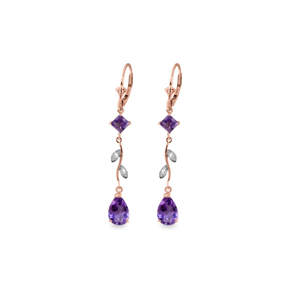 Genuine 14K Rose Gold 3.97 ctw Amethyst & Diamond Earrings