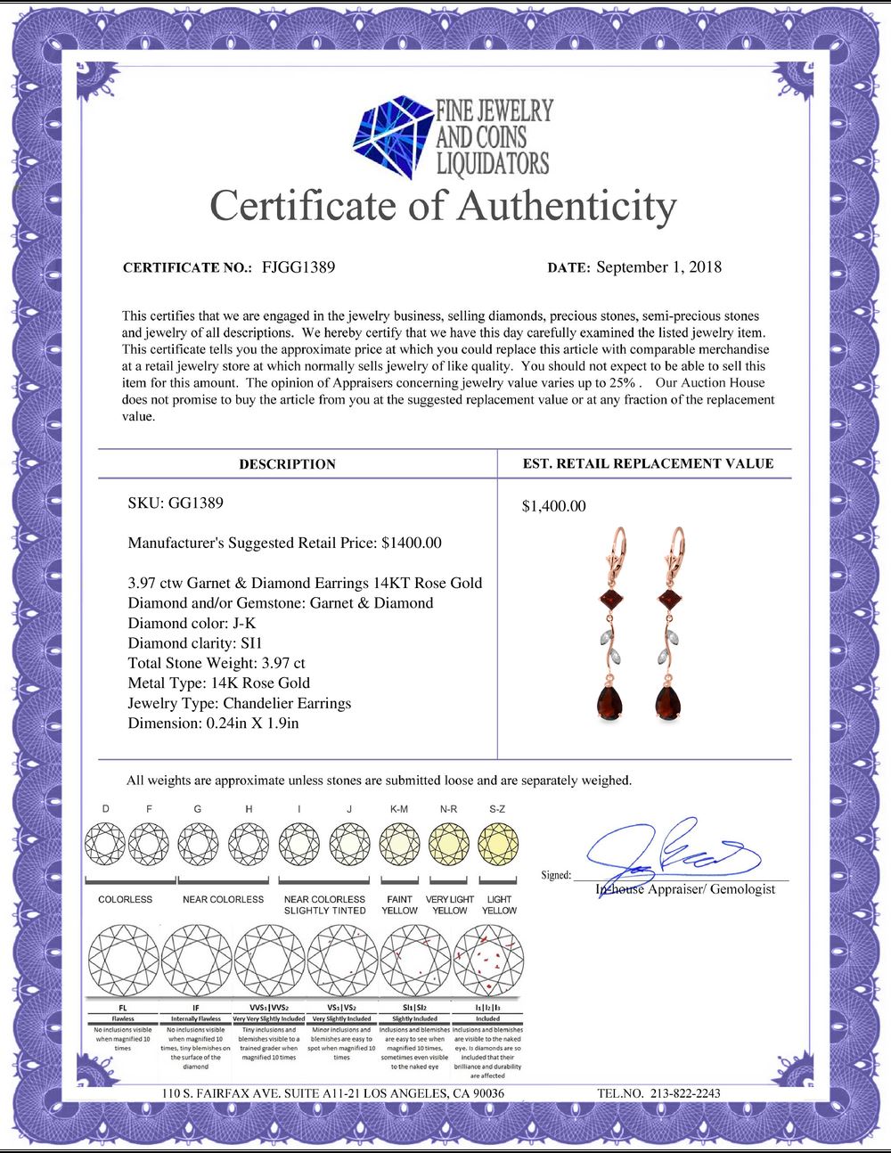 REF-44R9P - SKU: GG1389 ---- Genuine 3.97 ctw Garnet & Diamond Earrings 14KT Rose Gold