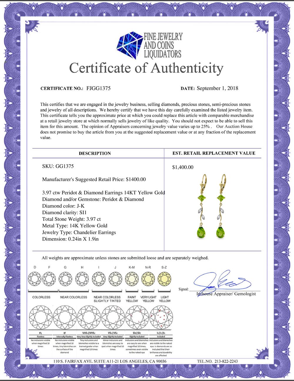 REF-44W9Y - SKU: GG1375 ---- Genuine 3.97 ctw Peridot & Diamond Earrings 14KT Rose Gold