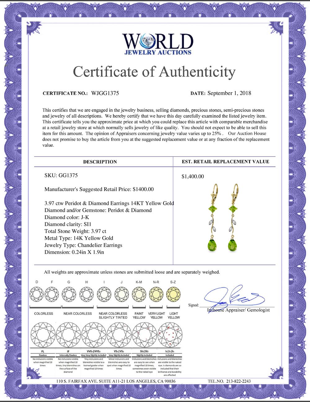REF-44W9Y - SKU: GG1375 ---- Genuine 3.97 ctw Peridot & Diamond Earrings 14KT Rose Gold