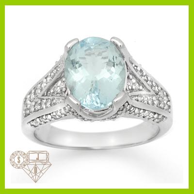 Gemstone: Aqua Marine ; Diamond Count: 78 RD ; Diamond Weight: 0.97; Clarity: SI1-SI2 H-J; Gemstone Clarity: AA - AAA : Color: Aqua ; Gemstone Count & Color: 1 Oval Cut; Gemstone Weight: 3.02; Metal Purity: 14KT; Metal: White-Gold ; Gold Weight (g) approx: 6.42; Ring Size 6.5; Dimension: Approx. 1/2" x 3/4"