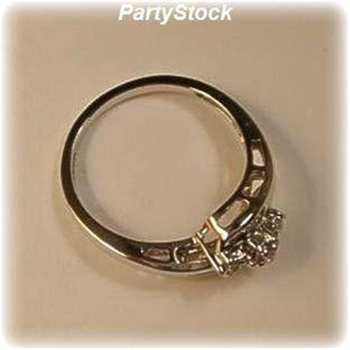 <b>SOLID 14K WHITE GOLD sets 3 Genuine Diamonds in this exquisite ring. These diamonds are accented by channel set diamonds on either side for more sparkle. Wide setting measures approx 12mm. Size 7. A one of a kind beauty. <BR>Arrives in a heart shaped, velvet gift box with satin lining.