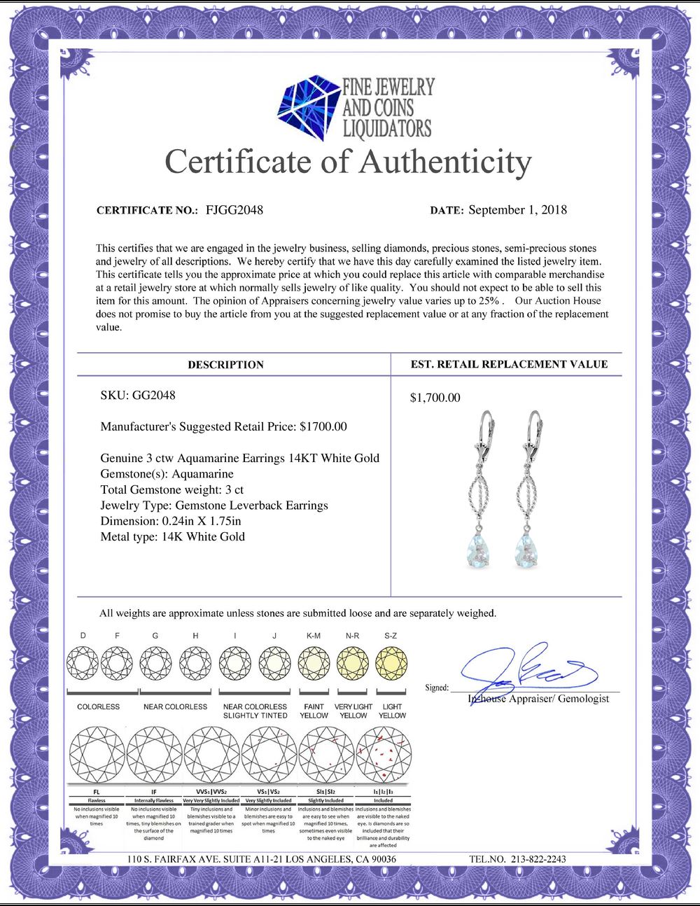REF-54Z2N - SKU: GG2048 ---- Genuine 3 ctw Aquamarine Earrings 14KT Rose Gold