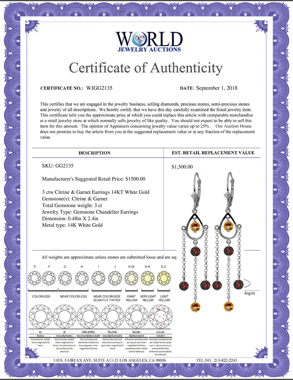 REF-48A9K - SKU: GG2135 ---- Genuine 3 ctw Citrine & Garnet Earrings 14KT White Gold