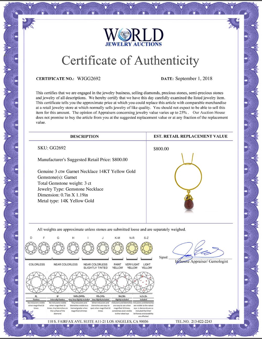 REF-24W4Y - SKU: GG2692 ---- Genuine 3 ctw Garnet Necklace 14KT Yellow Gold