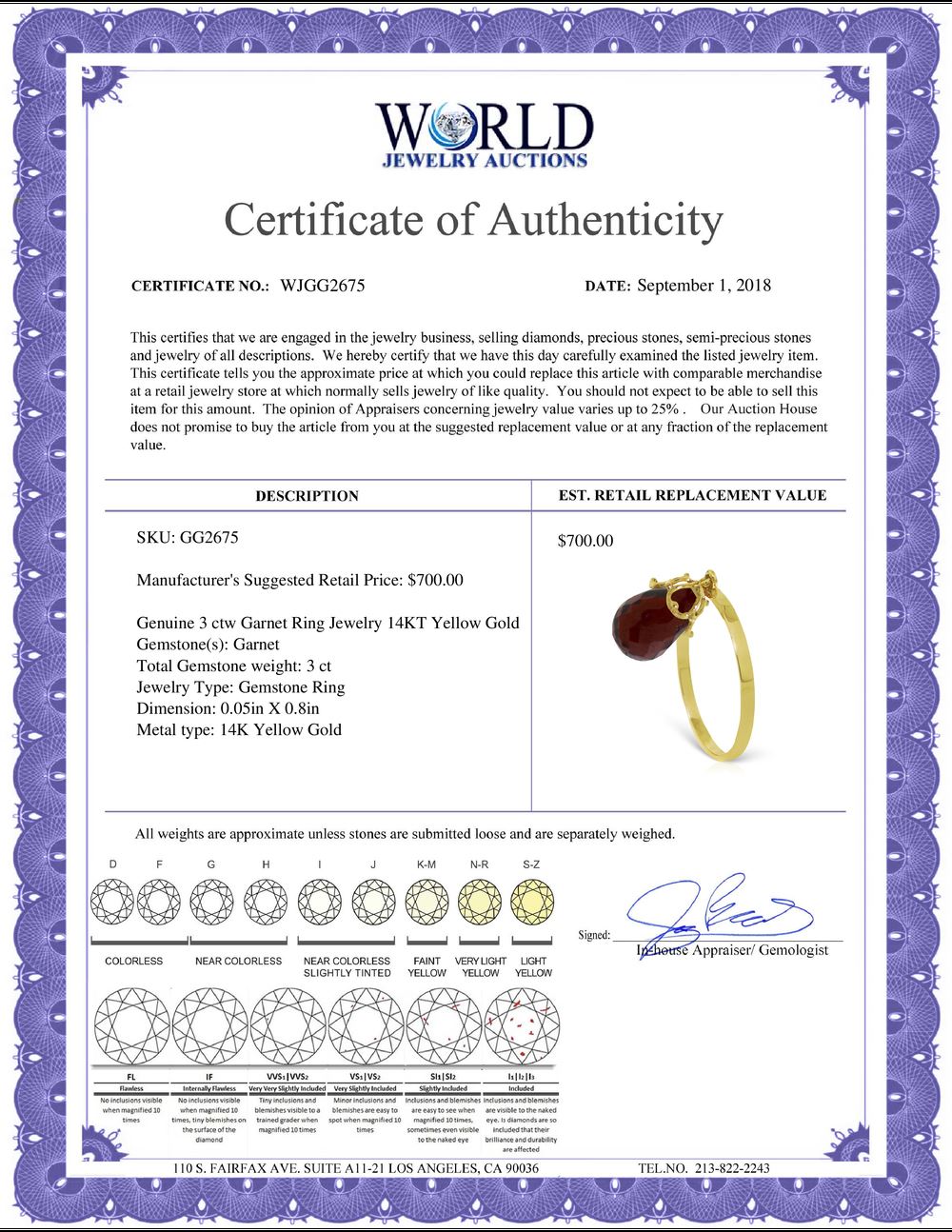 REF-22H5X - SKU: GG2675 ---- Genuine 3 ctw Garnet Ring 14KT Yellow Gold