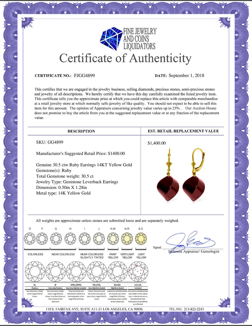REF-44T4A - SKU: GG4899 ---- Genuine 30.5 ctw Ruby Earrings 14KT Yellow Gold